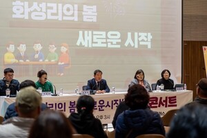 [충청뉴스라인 김대균 기자] 충북 증평군은 ‘화성리의 봄, 새로운 시작’ 토크콘서트로 화성리지구 농촌공간정비사업 선정 과정과 향후 재생 방향을 주민들과 공유했다고 25일 밝혔다.‘29년의 흉물, 이제는 희망의 공간으로!’라는 부제로 열린 행사는 윤모아파트 정비사업이 본격 궤도에 올라 군과 주민이 함께 다음 단계를 점검하는 공식 소통의 장으로 마련됐다.행사는 이재영 군수를 비롯해 주민대표, 청년, 지역주민 등 100여 명이 참석했다.행사는 군수 인사말과 주민대표 소감, 공모 선정 과정과 행정 준비 절차를 담은 영상 시청을 통해 윤모아
