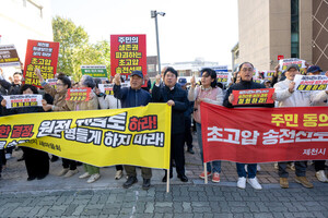 [충청뉴스라인 김대균 기자] 충북 제천 시민 300여 명과 송전선로 주민반대추진위원회는 27일 한국전력 충북강원건설지사 앞에서 ‘송전선로 제천경유 결사반대 시민 결의대회’로 신평창–신원주 345kV 송전선로 건설사업의 제천 경유 철회를 강력히 요구했다.시민들은 직선화 가능한 경로에도 불구하고 제천을 우회하려는 계획을 행정적 오류와 주민 기만으로 규정하며, 한전의 경로 원점 재검토와 충분한 주민 설명을 촉구했다.이날 집회에는 신창준 위원장의 결의문 낭독과 주민자치위원, 시의원 등의 발언이 이어졌으며, 시민들은 “청정 제천의 자연과 시